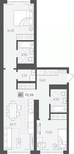Продаётся 1-комнатная квартира в строящемся доме (ГП 2 (Сергея Корепанова, 34)), срок сдачи: IV-кв. 2027, общей площадью 32.1 кв.м., на 2 этаже. Новый жилой комплекс ''Скандиа. Квартал у Леса'' от Специализированного застройщика ''СКАНДИА У ЛЕСА'' расположен в г. Тюмень на ул. Бориса Прудаева.