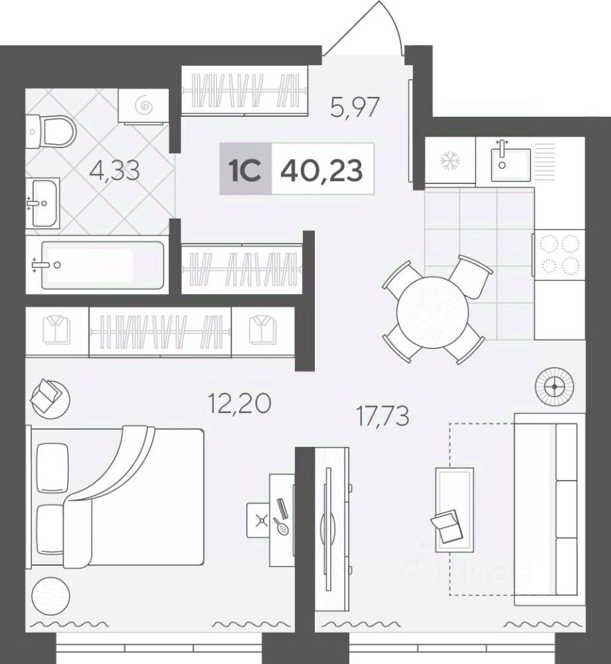 40 м² · Этаж 12 из 17