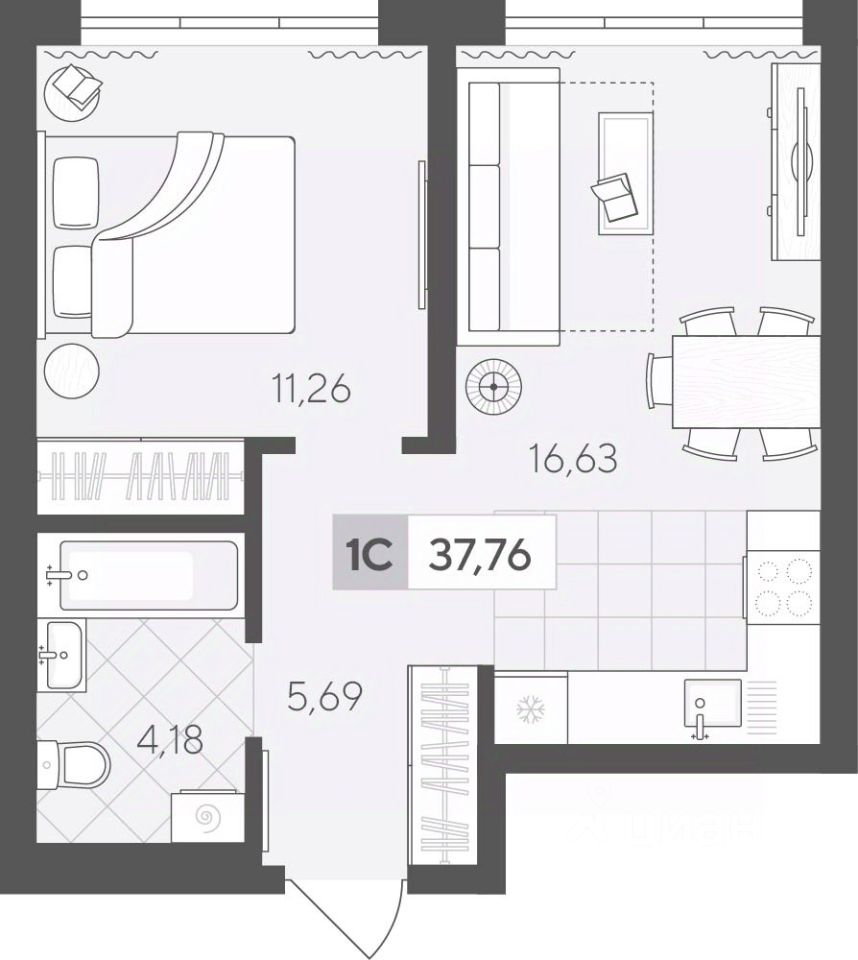 Продаётся 1-комнатная квартира в строящемся доме (ГП 2 (Сергея Корепанова, 34)), срок сдачи: IV-кв. 2027, общей площадью 37.76 кв.м., на 15 этаже. Новый жилой комплекс ''Скандиа. Квартал у Леса'' от Специализированного застройщика ''СКАНДИА У ЛЕСА'' расположен в г. Тюмень на ул. Бориса Прудаева.