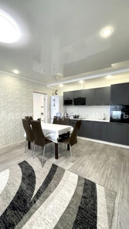 Арт. 123640419 Отличная квартира в районе Ново-Патрушева. В квартире выполнен качественный ремонт: потолки выровнены, в ванной комнате установлены натяжные потолки, ламинат на пробковой основе, на кухне — керамогранит, на стенах качественными обоями.В квартире два санузла, отделанных кафельной плиткой: один совмещён с душевой кабиной, второй — отдельная туалетная комната. Балкон застеклён.В квартире остаётся кухонный гарнитур со встроенной бытовой техникой (варочная панель, духовой шкаф, вытяжка), шкаф в прихожей, шкафы и стол в спальне, кондиционер. В доме колясочная и велопарковка. Во дворе есть большая парковка. За домом расположена автобусная остановка.Ново-Патрушева — это новый и активно развивающийся район с хорошо развитой инфраструктурой: детские площадки, множество магазинов, салоны красоты, кафе, детский сад, школа, а также остановки общественного транспорта.
