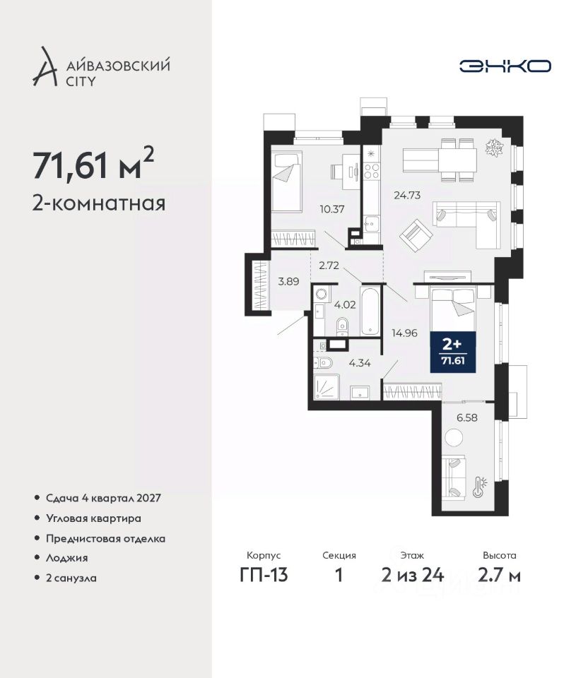 71 м² · Этаж 2 из 24