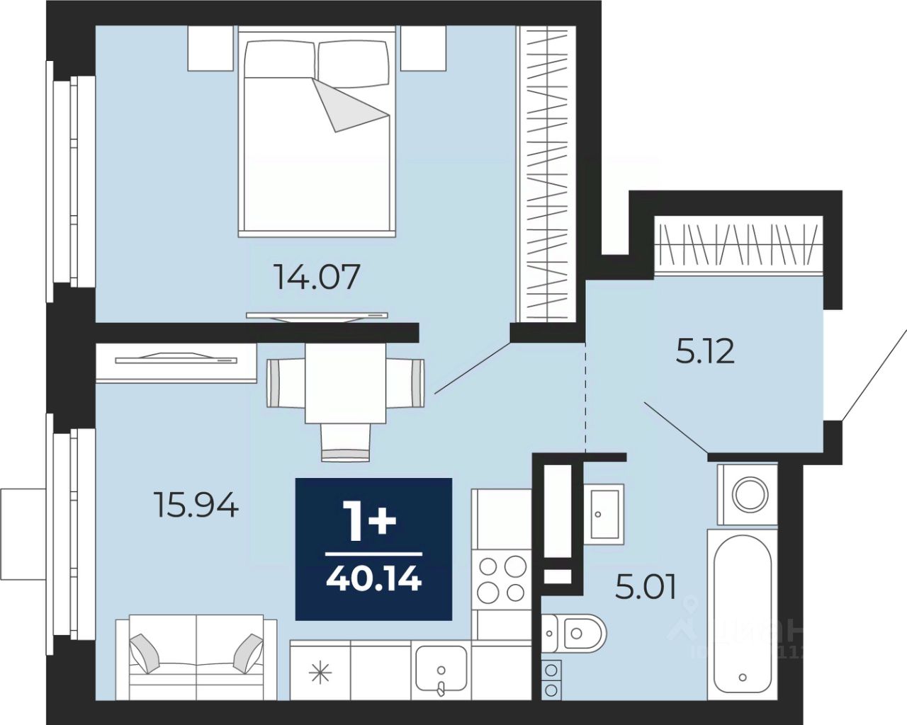 Однокомнатная квартира с предчистовой отделкой в ЖК ''Айвазовский City'' на 18 этаже. Общая площадь: 40.14 кв.м., жилая: 14.07 кв.м., площадь просторной кухни-столовой: 15.94 кв.м. Все окна выходят на одну сторону. В квартире один совмещенный санузел. Высота потолков 2.7 м. Дом монолитный, многоподъездный, высотой 24 этажа. Квартира находится в 3-й секции в корпусе ГП-12. На этаже 6 квартир. В подъезде 1 пассажирский и 1 грузовой лифт. Окончание строительства - 4 квартал 2028 года. Оформление сделки по договору долевого участия. Новый жилой район располагается в живописном месте на берегу Туры в центральной части города. Принципиально новое пространство для жизни в центре современного города для тех, чьи мечты сбываются, кто нацелен на постоянный рост, перемены к лучшему для себя и своих близких. Каждая деталь Айвазовский City вдохновляет и заряжает на новые свершения: авторская архитектура, сбалансированная продуманная инфраструктура, дизайнерские дворы со спортивными и детскими площадками, парковые зоны с фонтанами, водный канал, украшающий центральный прогулочный маршрут района и многое другое. В 2019 года проект стал лауреатом престижной премии Urban Awards 2019 в номинации ''Лучший строящийся региональный жилой комплекс бизнес-класса''. Главная особенность Айвазовский City - соседство разных архитектурных школ в рамках одного дома. Изысканная классика, выразительная эклектика и оригинальный модерн - жить в одном из таких домов настоящий повод для гордости. Айвазовский City это идеальное сочетание комфорта, технологий и развитой инфраструктуры. Вход в подъезд возможен с улицы и со двора. Отправляясь на работу или за покупками, жители могут выйти с внешней стороны дома, а для прогулки с ребенком со стороны двора. Экологически чистые материалы и энергосберегающие технологии, качественное освещение общественных зон, видеонаблюдение по всей территории жилого района (в том числе в подъездах, лифтах и в подземном паркинге), закрытые дворы с доступом только для жителей Айвазовский City. Часть домов в Айвазовский City будут оснащены подземным паркингом. Востребованный в нашем климатическом поясе формат хранения автомобилей защитит собственность владельца в любое время года. Аккредитация в банках: ПАО ''Газпромбанк'', ''Сбербанк России'', ОАО ''Альфа-Банк'', ПАО Банк ''ВТБ'', ПАО ''Совкомбанк'' и других. #2MV99z