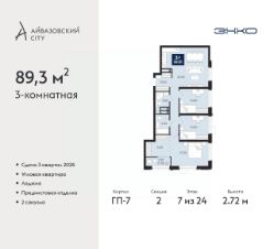 Продается 3-комн. квартира с предчистовой отделкой в ЖК ''Айвазовский City'' на 4 этаже. Общая площадь: 90.9 кв.м., жилая: 40.3 кв.м., площадь просторной кухни-столовой: 24.9 кв.м. Квартира - распашонка, без проходных комнат, окна выходят на paзные стороны дома. В квартире одна лоджия, два совмещенных санузла. Высота потолков 2.72 м. Дом монолитный, многоподъездный, переменной этажности, от 9 до 24 этажей. Квартира находится в 5-й секции высотой 9 этажей в корпусе ГП-7. На этаже 7 квартир. В подъезде 1 пассажирский и 2 грузовых лифта. Окончание строительства - 3 квартал 2026 года. Оформление сделки по договору долевого участия. Новый жилой район располагается в живописном месте на берегу Туры в центральной части города. Принципиально новое пространство для жизни в центре современного города для тех, чьи мечты сбываются, кто нацелен на постоянный рост, перемены к лучшему для себя и своих близких.Каждая деталь Айвазовский City вдохновляет и заряжает на новые свершения: авторская архитектура, сбалансированная продуманная инфраструктура, дизайнерские дворы со спортивными и детскими площадками, парковые зоны с фонтанами, водный канал, украшающий центральный прогулочный маршрут района и многое другое. В 2019 года проект стал лауреатом престижной премии Urban Awards 2019 в номинации ''Лучший строящийся региональный жилой комплекс бизнес-класса''. Главная особенность Айвазовский City - соседство разных архитектурных школ в рамках одного дома. Изысканная классика, выразительная эклектика и оригинальный модерн - жить в одном из таких домов настоящий повод для гордости. Айвазовский City это идеальное сочетание комфорта, технологий и развитой инфраструктуры. Вход в подъезд возможен с улицы и со двора. Отправляясь на работу или за покупками, жители могут выйти с внешней стороны дома, а для прогулки с ребенком со стороны двора. Экологически чистые материалы и энергосберегающие технологии, качественное освещение общественных зон, видеонаблюдение по всей территории жилого района (в том числе в подъездах, лифтах и в подземном паркинге), закрытые дворы с доступом только для жителей Айвазовский City. Часть домов в Айвазовский City будут оснащены подземным паркингом. Востребованный в нашем климатическом поясе формат хранения автомобилей защитит собственность владельца в любое время года. Аккредитация в банках: ОАО ''Альфа-Банк'', ПАО Банк ''ВТБ'', ''Сбербанк России'', ПАО ''Газпромбанк'', ПАО ''Промсвязьбанк'' и других. #z3ciOd