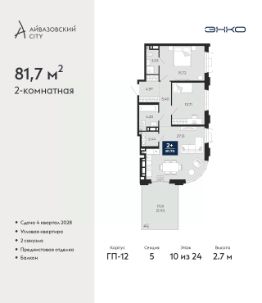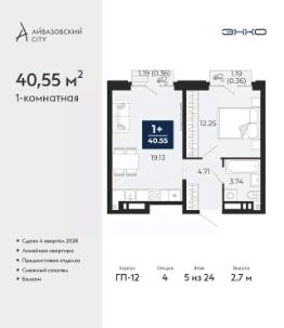 Однокомнатная квартира от застройщика с предчистовой отделкой в ЖК ''Айвазовский City'' на 3 этаже. Общая площадь: 37.27 кв.м., жилая: 13.85 кв.м., площадь просторной кухни-столовой: 14.51 кв.м. Все окна выходят на одну сторону. В квартире один совмещенный санузел. Высота потолков 2.7 м. Дом монолитный, многоподъездный, высотой 24 этажа. Квартира находится в 3-й секции в корпусе ГП-13. На этаже 9 квартир. В подъезде 1 пассажирский и 1 грузовой лифт. Окончание строительства - 4 квартал 2027 года. Оформление сделки по договору долевого участия. Новый жилой район располагается в живописном месте на берегу Туры в центральной части города. Принципиально новое пространство для жизни в центре современного города для тех, чьи мечты сбываются, кто нацелен на постоянный рост, перемены к лучшему для себя и своих близких.Каждая деталь Айвазовский City вдохновляет и заряжает на новые свершения: авторская архитектура, сбалансированная продуманная инфраструктура, дизайнерские дворы со спортивными и детскими площадками, парковые зоны с фонтанами, водный канал, украшающий центральный прогулочный маршрут района и многое другое. В 2019 года проект стал лауреатом престижной премии Urban Awards 2019 в номинации ''Лучший строящийся региональный жилой комплекс бизнес-класса''. Главная особенность Айвазовский City - соседство разных архитектурных школ в рамках одного дома. Изысканная классика, выразительная эклектика и оригинальный модерн - жить в одном из таких домов настоящий повод для гордости. Айвазовский City это идеальное сочетание комфорта, технологий и развитой инфраструктуры. Вход в подъезд возможен с улицы и со двора. Отправляясь на работу или за покупками, жители могут выйти с внешней стороны дома, а для прогулки с ребенком со стороны двора. Экологически чистые материалы и энергосберегающие технологии, качественное освещение общественных зон, видеонаблюдение по всей территории жилого района (в том числе в подъездах, лифтах и в подземном паркинге), закрытые дворы с доступом только для жителей Айвазовский City. Часть домов в Айвазовский City будут оснащены подземным паркингом. Востребованный в нашем климатическом поясе формат хранения автомобилей защитит собственность владельца в любое время года. Аккредитация в банках: ОАО ''Альфа-Банк'', ПАО Банк ''ВТБ'', ПАО ''Газпромбанк'', ''Сбербанк России'', АО ''ДОМ.РФ'' и других. #Z677du