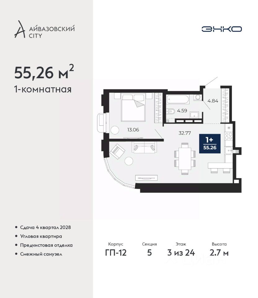 55 м² · Этаж 3 из 24
