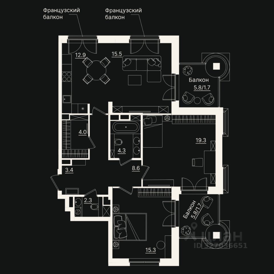 57 м² · Этаж 2 из 7