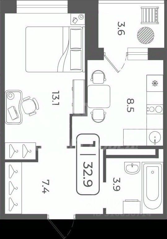32 м² · Этаж 21 из 22