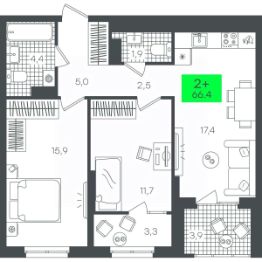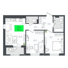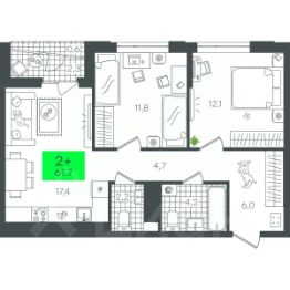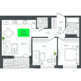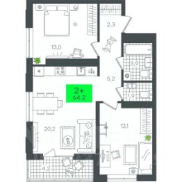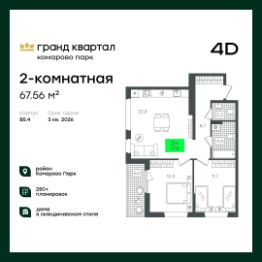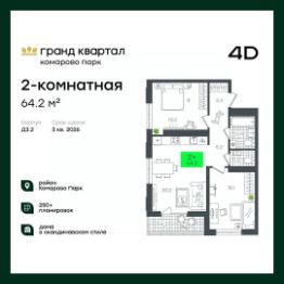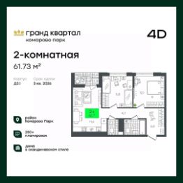 Продаётся 2-комнатная квартира в строящемся доме (В5.1 (Малкова, 19)), срок сдачи: III-кв. 2026, общей площадью 58.29 кв.м., на 20 этаже. Компания 4D приступила к строительству нового жилого комплекса ''Гранд квартал''. Новый ЖК находится в зеленой зоне Калининского района, южнее микрорайона Тюменская слобода.