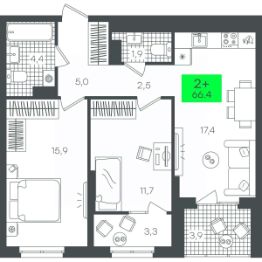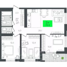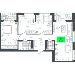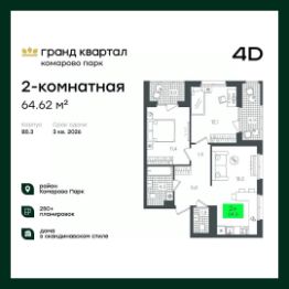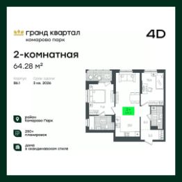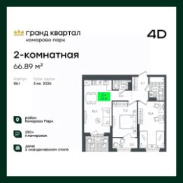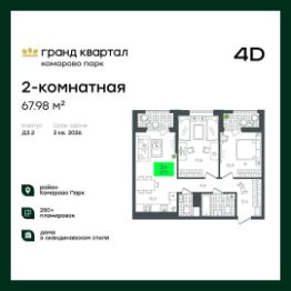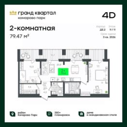 Продаётся 3-комнатная квартира в строящемся доме (1-Д3.2 (Глебова, 10)), срок сдачи: III-кв. 2026, общей площадью 78.66 кв.м., на 20 этаже. Компания 4D приступила к строительству нового жилого комплекса ''Гранд квартал''. Новый ЖК находится в зеленой зоне Калининского района, южнее микрорайона Тюменская слобода.