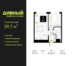 1-комн. квартира от застройщика с предчистовой отделкой в ЖК ''Дивный квартал у озера'' на 7 этаже. Общая площадь: 42.8 кв.м., жилая: 15.8 кв.м., площадь просторной кухни-столовой: 17.5 кв.м. Все окна выходят на одну сторону. В квартире один совмещенный санузел. Высота потолков 2.7 м. Квартира будет сдаваться с предчистовой отделкой White Box: выровнены и оштукатурены стены, проведено электричество и отопление, установлены радиаторы. Вы также можете приобрести квартиру с ремонтом от застройщика, представленным в трех цветовых решениях Scandi, Wood и Coffee и включающим: ламинат, обои под покраску, двери, натяжной потолок, санузел с сантехникой. При желании вы можете заказать отделку под ключ, варианты возможных решений представлены в альбоме фотографий. Дом монолитный, трехподъездный, переменной этажности, от 9 до 17 этажей. Квартира находится во 2-й секции высотой 17 этажей в корпусе ГП-6. На этаже 5 квартир. В подъезде 1 пассажирский и 1 грузовой лифт. Строительство завершено, дом сдан в 4 квартале 2025 года. Оформление сделки по договору купли-продажи. ''Дивный квартал у озера'' современный жилой квартал, удобно расположенный в 10-ти минутах от центра Тюмени, в уютном районе рядом с зеленым массивом и озером Алебашево. Комплекс находится между улицами Мельникайте и Алебашевская, что обеспечивает его хорошую транспортную доступность до центра на автомобиле всего 10 минут. Рядом с комплексом расположен Лесопарк имени Гагарина, экзотический Парк дружбы между Россией и Республикой Корея. ''Дивный квартал у озера'' объединяет архитектуру современной городской застройки и природную эстетику. Уютные дворы жилого комплекса будут не только безопасными, но и тихими. Закрытая территория надёжно защищена от шума и посторонних глаз. Здесь будут места для отдыха, детские площадки, зоны для выгула собак. В холлах первого этажа расположены мягкая зона ожидания, общественные санузлы и просторная колясочная. Квартал будет располагать богатой инфраструктурой: на первых этажах домов разместятся магазины, пекарни, кофейни, пункты выдачи, аптеки, детские центры, цветочные салоны и многое другое, что сделает жизнь поистине комфортной. В комплексе есть теплый подземный паркинг и кладовые. #ZmcCeu
