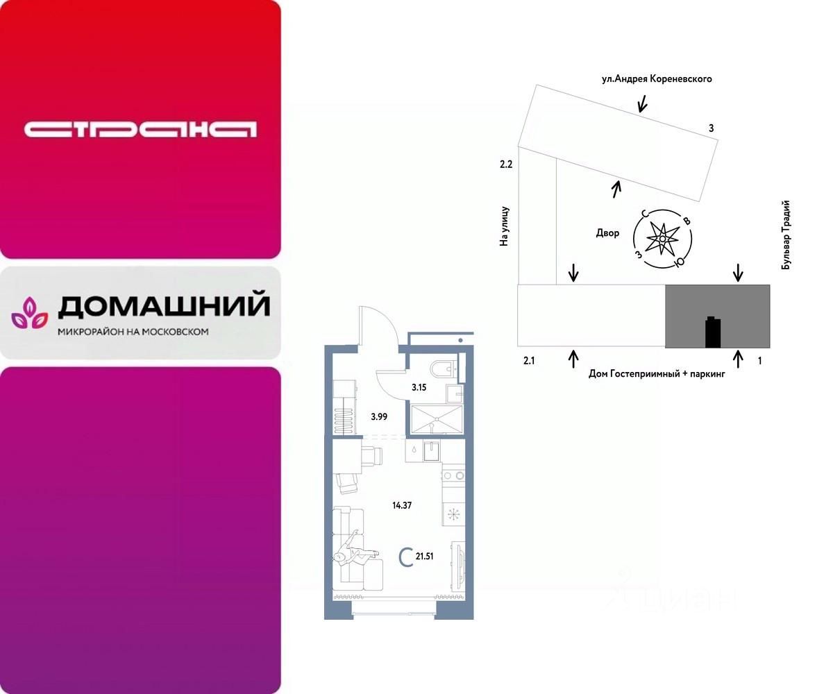 Объявление от застройщика Страна Девелопмент. Покупка квартиры защищена банком. Продается 1комнатная квартира на 9 этаже от застройщика Страна Девелопмент. Площадь квартиры 21,51 кв. м. О ПРОЕКТЕ Микрорайон ''Домашний'' — это 6 очередей строительства, 24 дома переменной этажности. Каждый дом уникальный. Внутри микрорайона появится огромный пешеходный бульвар — бульвар Традиций. Центром притяжения станут открытые пространства для отдыха жителей и гостей микрорайона, которые легко меняются под сезонные сценарии отдыха: новогодняя елка, ярмарки, кинопоказы и т.д. У каждого дома обустроен приватный двор с зонами для активного и спокойного отдыха. В активной зоне детские разновозрастные площадки с горками, песочницами и качелями, воркаут-зоны. В спокойной — скамейки, мини-амфитеатры, закрытые перголы. Уютной атмосферу сделает обильное озеленение и освещение ''домашними'' торшерами. ОТДЕЛКА Квартиры сдаются с предчистовой отделкой. Все грязные работы выполнены: произведена разводка электричества и отопления, выполнена стяжка пола, стены выровнены ''под маяк''. В квартире установлены розетки, выключатели и радиаторы. На входе — надежная стальная дверь. Вам остается только выбрать материалы и начать ремонт Доступна опция ''Ремонт от застройщика''. Стоимость можно включить в ипотеку. Вы можете заказать один из пяти стилей на выбор: шалфей, хлопковая нить, серый шторм, голубой вереск, белый камень. КУХНЯ С ТЕХНИКОЙ Теперь дополнительно к ремонту можно заказать кухню со встроенной техникой. Эргономику и функциональное наполнение разработали под каждую планировку. ПОЛНАЯ МЕБЛИРОВКА Больше не нужно тратить время даже на подбор, доставку и сборку мебели.Вы можете включить в стоимость квартиры с ремонтом полную меблировку. - Что входит в меблировку? - Кухня с техникой и сантехникой - Диван - Кровать - Шкаф в спальне - Шкаф в прихожей На консультации менеджер подскажет, какие акции действуют, и как получить одобрение по ипотеке с низкой ставкой. Более подробная информация по телефону.