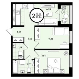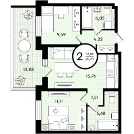 55 м2