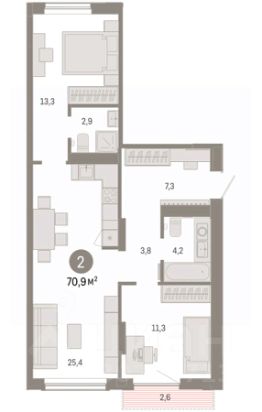 Квартира с кухней-гостиной и двумя спальнями в Октябрьском на Туре. Особенности планировки: вид во двор, мастер-спальня, окна в пол, отдельный вход, панорамное остекление, разнесённые спальни, свободная планировка, терраса. квартиры в нашей базе: ОКТ-08-3-3.1.1. Район Проект расположен на берегу реки, в одном из самых живописных и экологичных районов Тюмени. За последние годы облик района изменился. По соседству с индивидуальной застройкой выросли многоквартирные дома. При проектировании ''Октябрьского на Туре'' нашей приоритетной задачей стало сохранение природного ландшафта: мы постарались деликатно вписать в него современную архитектуру. Квартал удачно расположен с точки зрения дорожной инфраструктуры. На автомобиле путь до центра города составит 15 минут. Добраться до набережной и главных тюменских достопримечательностей можно и на общественном транспорте. В пешей доступности находится автобусная остановка. Проект По мастер-плану здесь будет восемь домов. Ядро застройки составляют замкнутые кварталы переменной этажности. Их высотность понижается по мере приближения к реке. На углах участка мы разместили башни-доминанты. Одной из достопримечательностей квартала станет парк на Туре — здесь появится зеленая зона протяженностью около 6 километров для пеших и велопрогулок. Смысловая ось квартала — широкая главная улица с высаженными вдоль неё высокими деревьями. Они создают тень и работают как шумо- и пылезащитные экраны. Это место сосредоточения основных пешеходных и транспортных потоков, на сторону которых мы ориентировали большинство коммерческих помещений. Отсюда жители могут свернуть на тихие соседские улицы и попасть на внутриквартальную площадь — ещё одну точку притяжения. #ZZD3dV