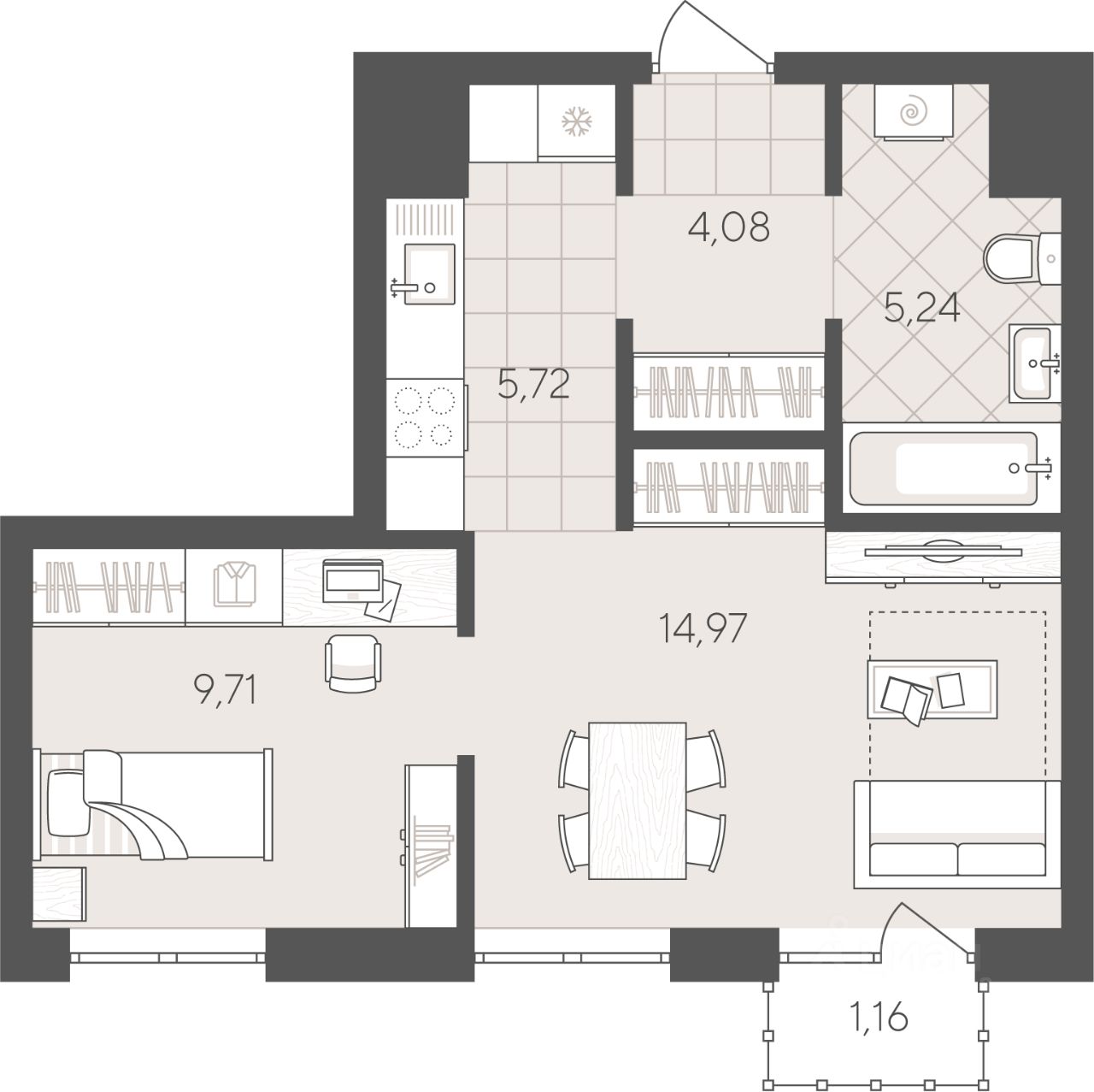 38 м² · Этаж 9 из 9