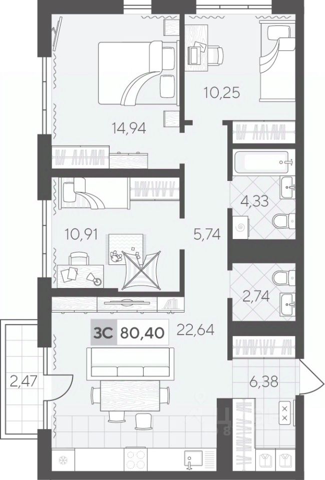 79 м² · Этаж 3 из 24
