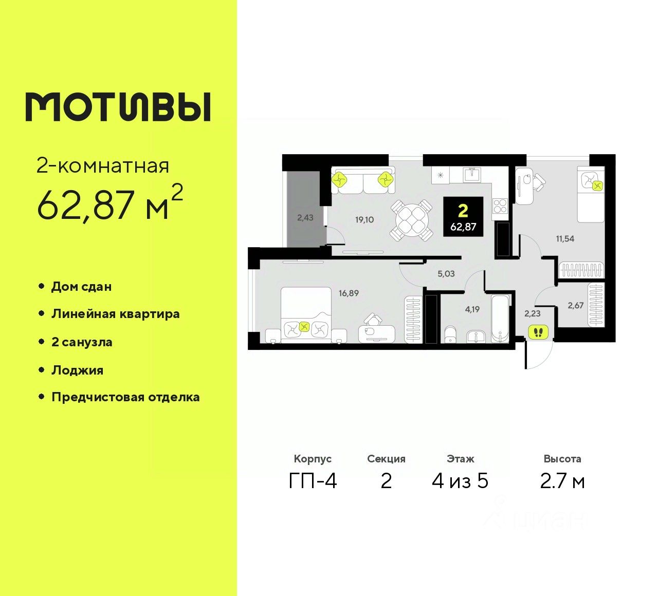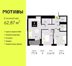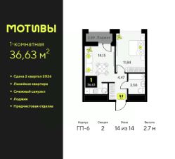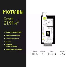 Продается 1-комн. квартира-студия с предчистовой отделкой в ЖК ''Мотивы'' на 12 этаже. Общая площадь: 24.95 кв.м., площадь гостиной 14.02 кв.м., из которых 5 кв.м. выделено под кухонную зону. Все окна выходят на одну сторону. В квартире один балкон, один совмещенный санузел. Высота потолков 2.7 м. Квартира будет сдаваться с предчистовой отделкой White Box: выровнены и оштукатурены стены, проведено электричество и отопление, установлены радиаторы. Вы также можете приобрести квартиру с ремонтом от застройщика, представленным в трех цветовых решениях Scandi, Wood и Coffee и включающим ламинат, обои под покраску, двери, натяжной потолок и санузел с сантехникой. При желании вы можете заказать отделку под ключ, варианты возможных решений представлены в альбоме фотографий. Дом монолитный, черырехподъездный, переменной этажности, от 12 до 14 этажей. Квартира находится во 2-й секции высотой 14 этажей в корпусе ГП-6. На этаже 12 квартир. В подъезде 1 пассажирский и 1 грузовой лифт. Окончание строительства - 2 квартал 2026 года. Оформление сделки по договору долевого участия. Закрытая от автомобилей территория, безопасный двор и камеры видеонаблюдения - гаранты вашего спокойствия. Квартал будет располагать богатой инфраструктурой: на первых этажах разместятся магазины, пекарни, кофейни, пункты выдачи, аптеки, детские центры, цветочные салоны и многое другое, что сделает жизнь поистине комфортной. Рядом находится парк общей площадью почти 5000 м², в котором располагаются локации для игр и отдыха жителей, здесь можно совершить утреннюю пробежку или прогуляться после рабочего дня. В парке есть зона воркаута с тренажерами для взрослых, игровые комплексы с горками и канатный комплекс для детей разных возрастов, качели и лавочки для отдыха, площадки для командных видов спорта и для панна-футбола. В ЖК ''Мотивы'' всё продумано до мелочей: светлые холлы входных групп, оформленные в едином стиле, просторные колясочные, лапомойки для питомцев. На территории комплекса находятся 2 8-ми этажных паркинга и более 1000 м/м на открытой парковке. Жилой комплекс находится в одном из экологически благоприятных районов Тюмени, недалеко от Плехановского бора. При этом до центра города можно добраться за 15 минут, а до международного аэропорта Рощино за 13 минут. Окончание строительства: ГП 1, 2, 3, 4 сдача до конца 2024 года, ГП 6, 7, 8 сдача 2 квартал 2026 года. #ZwA7Bo