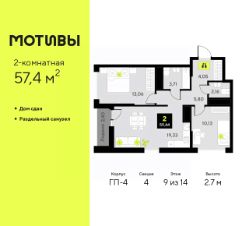 Продается двухкомнатная квартира с предчистовой отделкой в ЖК ''Мотивы'' на 6 этаже. Общая площадь: 54.64 кв.м., жилая: 23.82 кв.м., площадь просторной кухни-столовой: 19.89 кв.м. Комнаты изолированные, все окна выходят на одну сторону. В квартире одна лоджия, один совмещенный санузел. Высота потолков 2.7 м. Квартира будет сдаваться с предчистовой отделкой White Box: выровнены и оштукатурены стены, проведено электричество и отопление, установлены радиаторы. Вы также можете приобрести квартиру с ремонтом от застройщика, представленным в трех цветовых решениях Scandi, Wood и Coffee и включающим ламинат, обои под покраску, двери, натяжной потолок и санузел с сантехникой. При желании вы можете заказать отделку под ключ, варианты возможных решений представлены в альбоме фотографий. Дом монолитный, черырехподъездный, переменной этажности, от 12 до 14 этажей. Квартира находится во 2-й секции высотой 14 этажей в корпусе ГП-6. На этаже 12 квартир. В подъезде 1 пассажирский и 1 грузовой лифт. Окончание строительства - 2 квартал 2026 года. Оформление сделки по договору долевого участия. Закрытая от автомобилей территория, безопасный двор и камеры видеонаблюдения - гаранты вашего спокойствия. Квартал будет располагать богатой инфраструктурой: на первых этажах разместятся магазины, пекарни, кофейни, пункты выдачи, аптеки, детские центры, цветочные салоны и многое другое, что сделает жизнь поистине комфортной. Рядом находится парк общей площадью почти 5000 м², в котором располагаются локации для игр и отдыха жителей, здесь можно совершить утреннюю пробежку или прогуляться после рабочего дня. В парке есть зона воркаута с тренажерами для взрослых, игровые комплексы с горками и канатный комплекс для детей разных возрастов, качели и лавочки для отдыха, площадки для командных видов спорта и для панна-футбола. В ЖК ''Мотивы'' всё продумано до мелочей: светлые холлы входных групп, оформленные в едином стиле, просторные колясочные, лапомойки для питомцев. На территории комплекса находятся 2 8-ми этажных паркинга и более 1000 м/м на открытой парковке. Жилой комплекс находится в одном из экологически благоприятных районов Тюмени, недалеко от Плехановского бора. При этом до центра города можно добраться за 15 минут, а до международного аэропорта Рощино за 13 минут. Окончание строительства: ГП 1, 2, 3, 4 сдача до конца 2024 года, ГП 6, 7, 8 сдача 2 квартал 2026 года. #z6D2o4