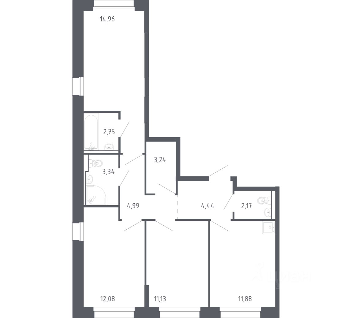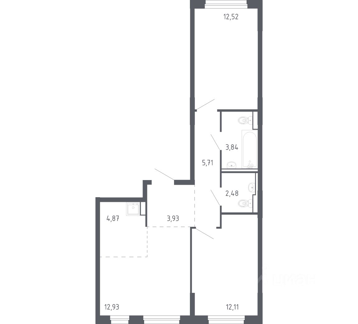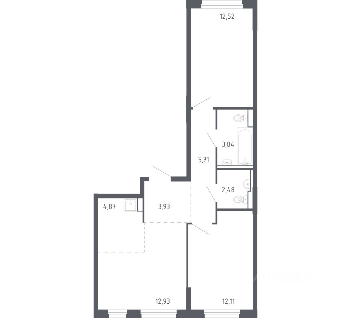58 м² · Этаж 12 из 17