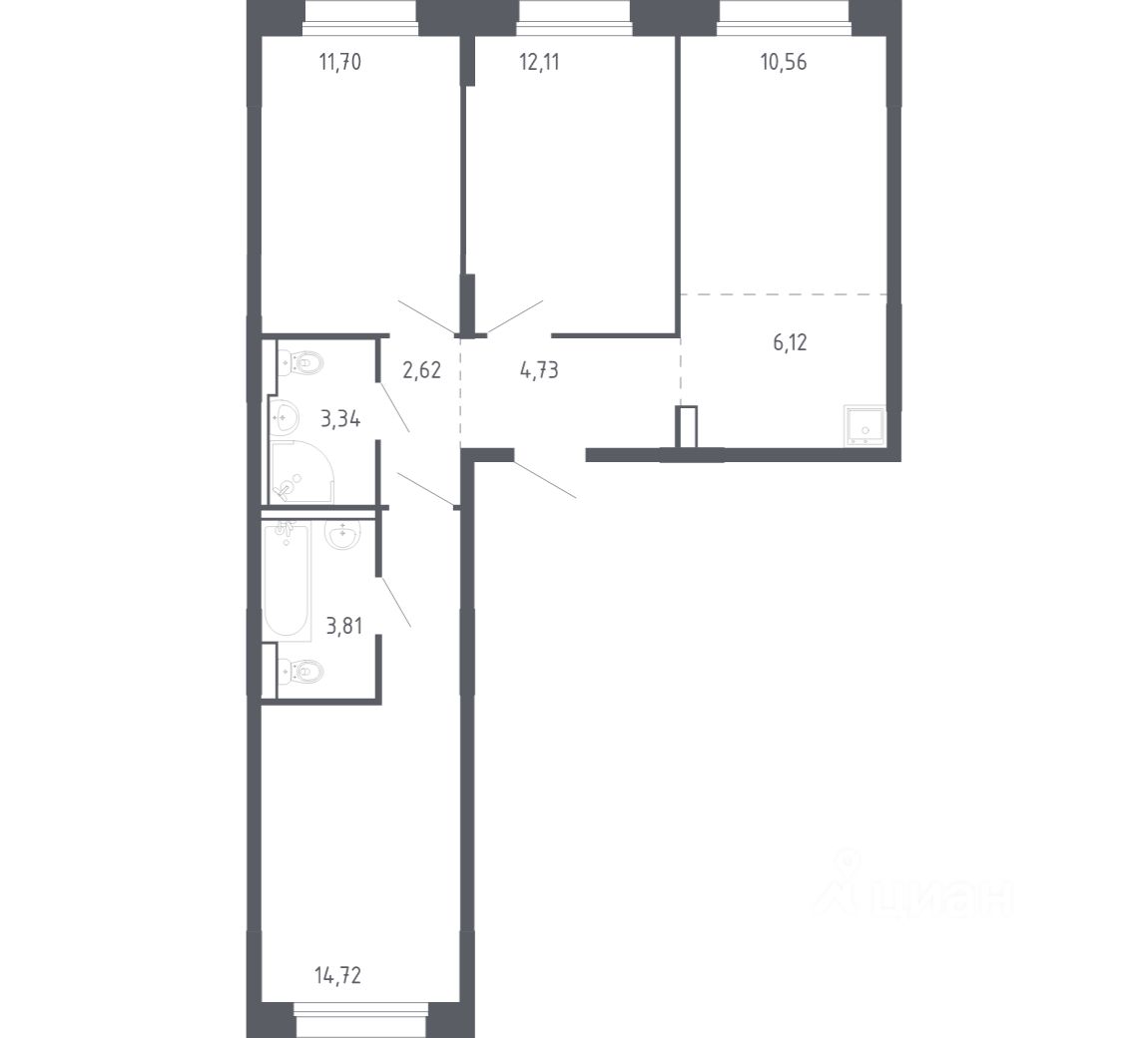 Строим кварталы для жизни с заботой о будущем. Предлагается 3-комнатная квартира комфорт-класса площадью 69.71 кв.м в корпусе 2.2КВ на 12-м этаже, в жилом комплексе ''Чаркова 72''. Выбирайте свое место для счастливой жизни: от уютной студии до просторной 3-комнатной квартиры. Хотите погрузиться в творческий процесс ремонта? Присмотритесь к вариантам предчистовой отделки. Если хотите сразу отпраздновать новоселье, поручите нам работы по отделке. Мы установим двери, окна и сантехнику, положим ламинат и плитку. На стенах будут обои, которые можно перекрашивать до 8 раз. Приобрести квартиры возможно по специальным акциям от застройщика, с текущими условиями акций можно ознакомиться в блоке ''Акций''. Цена динамическая и может отличаться, уточняйте актуальность у застройщика. Идеальное сочетание городского комфорта и размеренной жизни — квартал ''Чаркова 72'' на северо-востоке города. В дизайне 1724-этажных домов с панорамными балконами нашли отражение нотки сибирской природы. От ''Чаркова 72'' удобно добираться до центра города — всего 17 минут пути. А в 2 минутах от дома находится Тобольский тракт. Для семейного отдыха отлично подойдет парк Гагарина — он находится в 7 минутах от квартала. В закрытых дворах тихо и уютно — все авто остались на одном из 4 многоуровневых паркингов, которые находятся за территорией квартала. Можно спокойно гулять по бульвару и заниматься йогой на спортивной площадке. На первых этажах домов — кафе и магазины. Рядом с проектом — детские сады и школы, городская поликлиника и МФЦ. Во всех квартирах есть выводы под кондиционеры, на подземных этажах — индивидуальные кладовые, на первых — места для хранения велосипедов и колясок. В квартирах можно выбрать варианты отделки: чистовая, черновая и улучшенная из материалов повышенного класса.