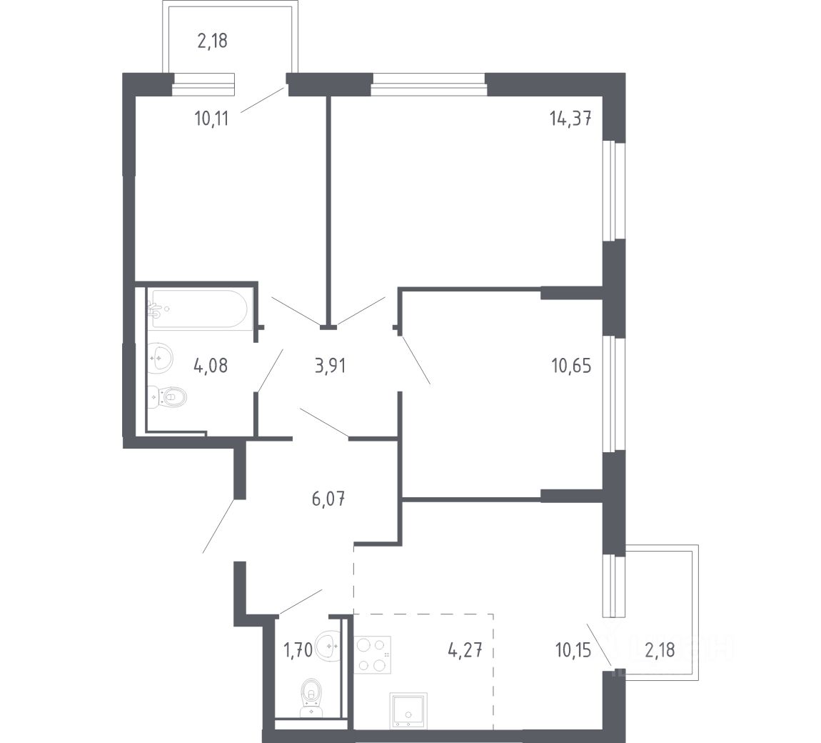 61 м² · Этаж 15 из 18