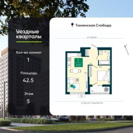 Однокомнатная квартира от застройщика в ЖК ''Уездные кварталы'' на 9 этаже. Квартира без отделки, после оформления собственности можно делать ремонт. Общая площадь: 43.3 кв.м., жилая: 12.6 кв.м., площадь просторной кухни-столовой: 16.8 кв.м. Все окна выходят на одну сторону. В квартире одна лоджия, один совмещенный санузел. Высота потолков 2.72 м. Дом монолитный, двухподъездный, переменной этажности, от 9 до 17 этажей. Квартира находится в 1-й секции высотой 17 этажей в корпусе ГП-5.1. На этаже 8 квартир. В подъезде 1 пассажирский и 1 грузовой лифт. Окончание строительства - 4 квартал 2026 года. Оформление сделки по договору долевого участия. ''Уездные кварталы'' - семейный жилой комплекс комфорт-класса с авторской архитектурой и трехуровневым ландшафтным озеленением. Рядом расположены крупные транспортные развязки, которые позволяют добраться в любую точку города за 15 минут. Жилой комплекс находится в современном районе с развитой инфраструктурой, на первой линии Тюменской Слободы. Вокруг есть всё необходимое в шаговой доступности: новые детские сады и школы, остановки общественного транспорта, магазины, кафе и рестораны, поликлиника, детская школа искусств, парки и спортивный комплекс. На первых этажах квартала расположена собственная коммерческая сеть, а также свой соседский центр. Проект включает 5 домов переменной этажности с более чем 100 планировками - с террасами, французскими балконами и мастер-спальнями. Закрытые дворы оборудованы интерактивными площадками для игр, спортивными зонами и местами тихого отдыха. Вдоль жилого комплекса расположен пешеходный бульвар с сухим фонтаном, а для автомобилей предусмотрен теплый паркинг. Часть квартир можно приобрести с ремонтом, мебелью и техникой от застройщика, а расходы включить в ипотечный платеж. #zM5Da2