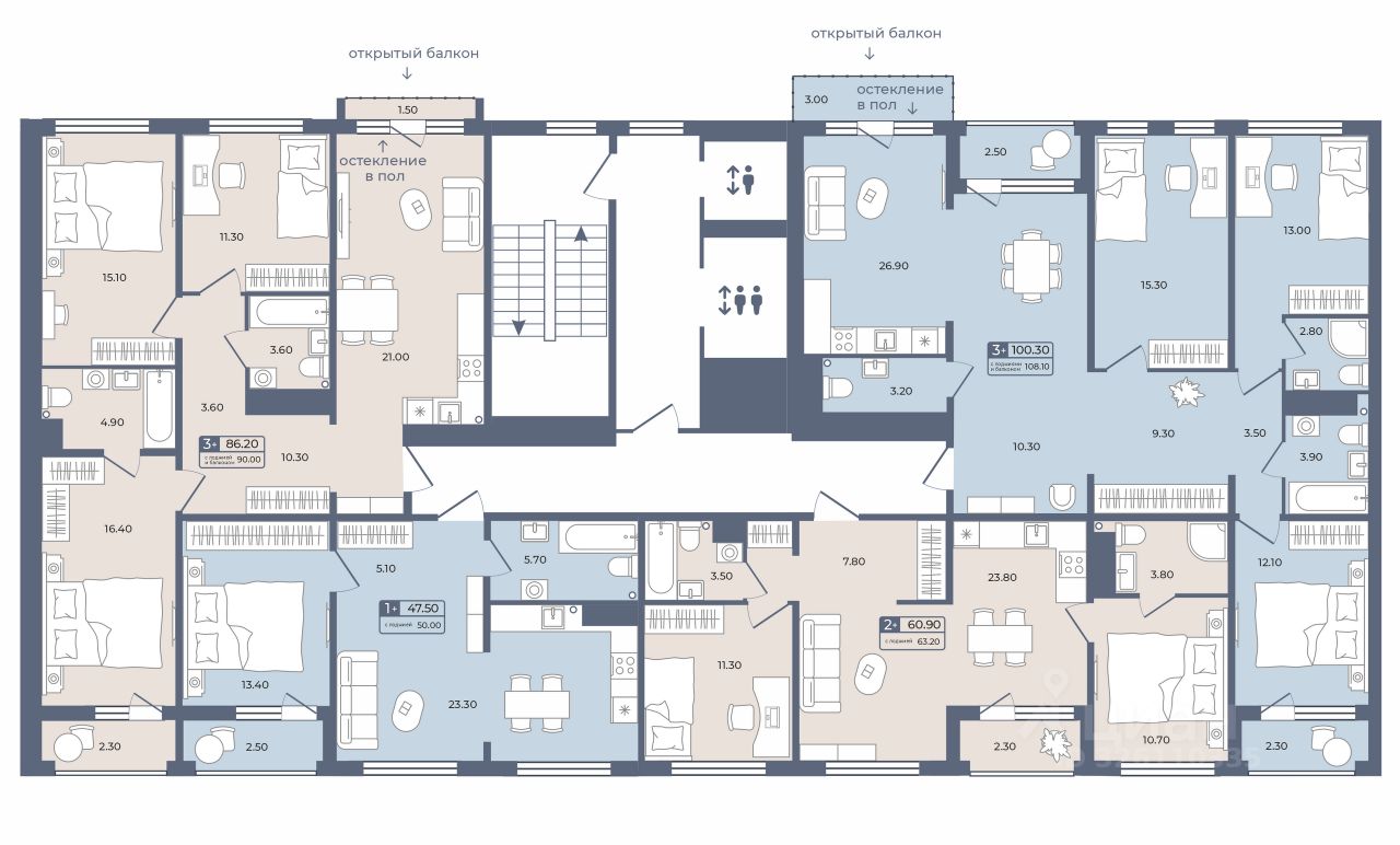 43 м2