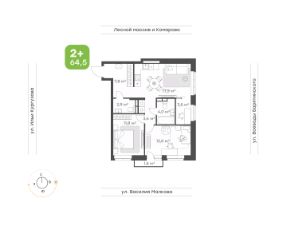 Удобная квартира 2+ Если вы выбрали эту квартиру, то вы обладатель прекрасной квартиры 2+ с окнами на две стороны! •Удобная кухня-гостиная с широким окном •Просторная спальня•Вместительный коридор с нишей под шкаф-купе•Два санузла, где вместится все необходимое