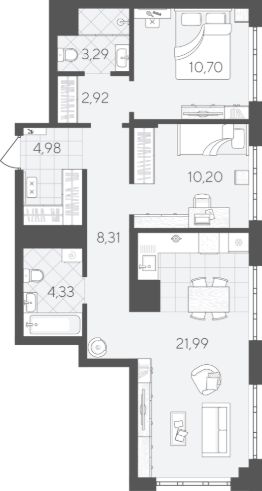 Квартира 495 на 7 этаже. ''Скандиа. Квартал в Слободе'' — современная комплексная застройка в развитом районе, состоящая из двух домов переменной этажности и двух многоуровневых паркингов. Доминантами проекта станут две 24-этажные секции.Квартал расположен через дорогу от гимназии 4, рядом со сквером Вьюжный и лесопарком. В шаговой доступности 2 детских сада, остановка общественного транспорта, поликлиника, магазины и кофейни. Квартира с 2 спальнями площадью 66,72 кв.мПродуманная геометрия комнат позволит легко зонировать пространство и подобрать необходимую мебель.В кухне-гостиной комфортно вместе готовить, проводить семейные ужины или настольные игры с друзьями.Один из двух санузлов можно оборудовать под функциональную постирочную. Необходимые коммуникации уже проведены, осталось только подключить стиральную машину и организовать место для сушки вещей.