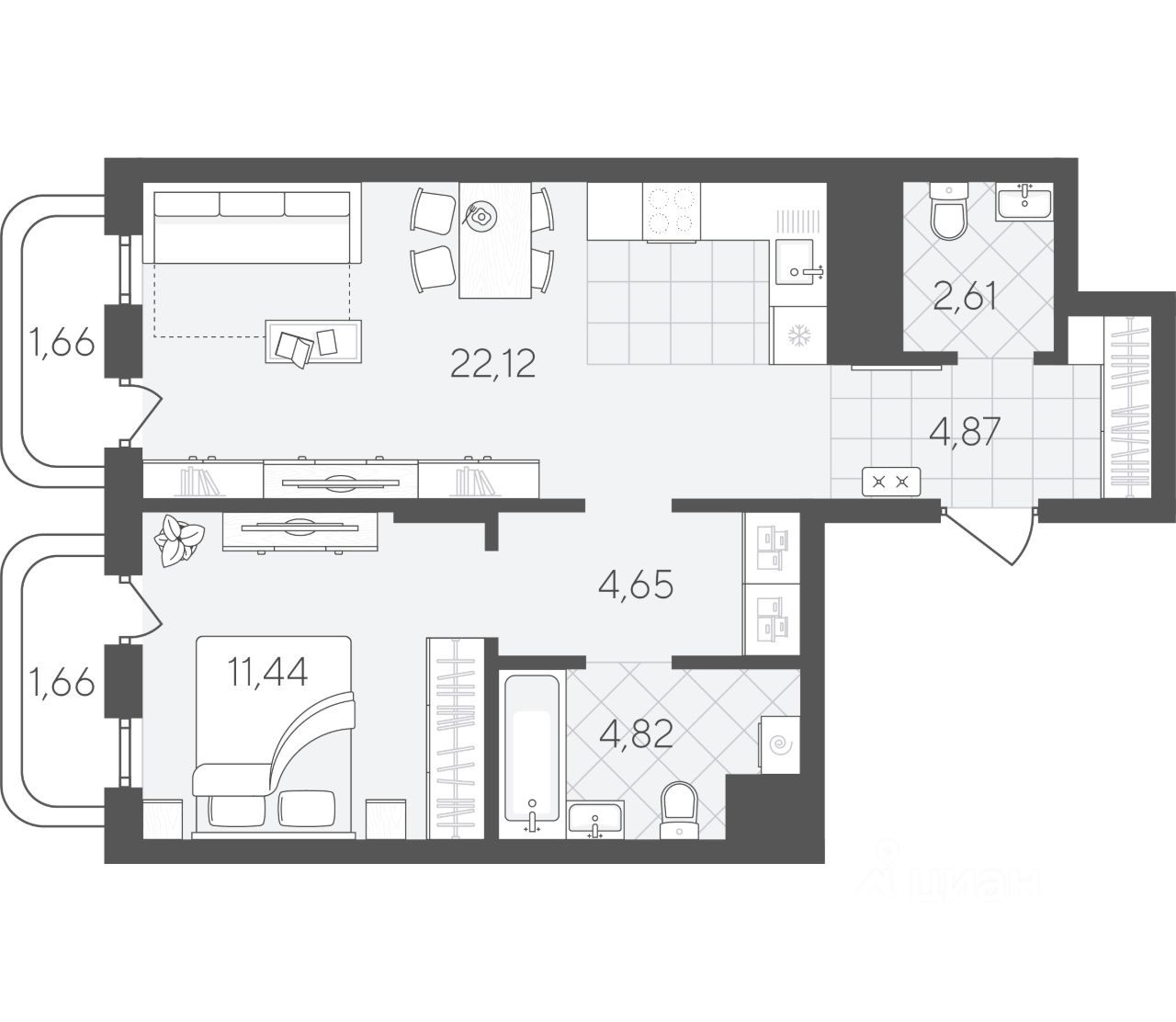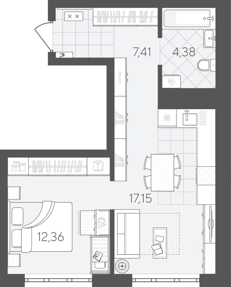 43 м² · Этаж 7 из 24