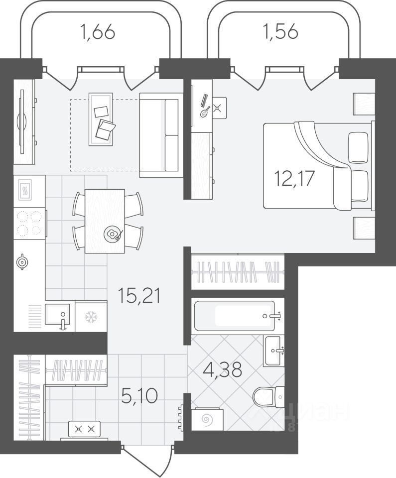 Квартира 192 на 17 этаже. ''Скандиа. Квартал в Слободе'' — современная комплексная застройка в развитом районе, состоящая из двух домов переменной этажности и двух многоуровневых паркингов. Доминантами проекта станут две 24-этажные секции. Квартал расположен через дорогу от гимназии 4, рядом со сквером Вьюжный и лесопарком. В шаговой доступности 2 детских сада, остановка общественного транспорта, поликлиника, магазины и кофейни. Квартира с 1 спальней площадью 53,83 кв.м В квартире есть кухня-гостиная и отдельная спальня, предусмотрены ниши под шкафы-купе. Это позволяет оставить больше пространства для жизни. В кухне-гостиной можно поставить раскладной диван, который, при необходимости, будет дополнительным спальным местом.