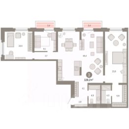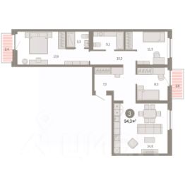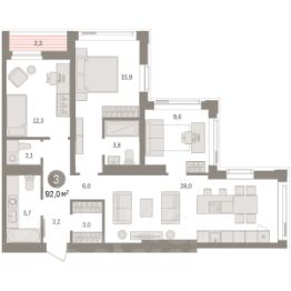Просторная трехкомнатная квартира с предчистовой отделкой в ЖК ''Зарека'' на 21 этаже. Общая площадь: 92.02 кв.м. Высота потолков 2.7 м. Квартира находится в корпусе 5-1. Дом монолитный, одноподъездный, высотой 25 этажей. На этаже 12 квартир. В подъезде 2 пассажирских и 1 грузовой лифт. Окончание строительства - 1 квартал 2027 года. Оформление сделки по договору долевого участия. Продаётся с паркингом. Квартира с кухней-гостиной и тремя спальнями в жилом районе ''Зарека''. Особенности планировки: предчистовая отделка, терраса на крыше. квартиры в нашей базе: ЗРК05.1-Ж1.21.5. Проект На планировочную структуру ''Зареки'' повлияла близость к автомобильному мосту Челюскинцев. Мы расположили жилые здания так, чтобы они постепенно удалялись от проезжей части. Приём напоминает лесенку: чем сильнее мост возвышается над участком застройки, тем дальше по отношению к нему стоят дома. Этот ступенчатый сдвиг позволил нам сформировать буфер между кварталами и оживлённой магистралью. Мы намерены высадить здесь высокие деревья и создать дополнительную защиту от дорожных шума и пыли. В границах нашего участка мы намерены разместить школу и два встроенных детских сада на 135 и 150 мест. Общественные пространства С севера на юг территорию будет пронизывать пешеходный бульвар. Мы мыслим это общественное пространство как главный центр притяжения. На нём будут сосредоточены основные детские игровые и спортивные зоны, места для встреч и спокойного отдыха. Он также сыграет роль мостика, ведущего к другим нашим проектам — ''Европейскому кварталу'' и ''Дому у озера''. Одна из базовых идей мастер-плана касается береговой линии. Сегодня озеленение этой территории носит стихииныи характер, а прямому доступу к Туре препятствует дамба. Мы хотим благоустроить пространства у воды и открыть их для людей. Архитекторы спроектировали систему многоярусных троп и спусков к реке, смотровые площадки и места для активного отдыха и пикников. #2svovC