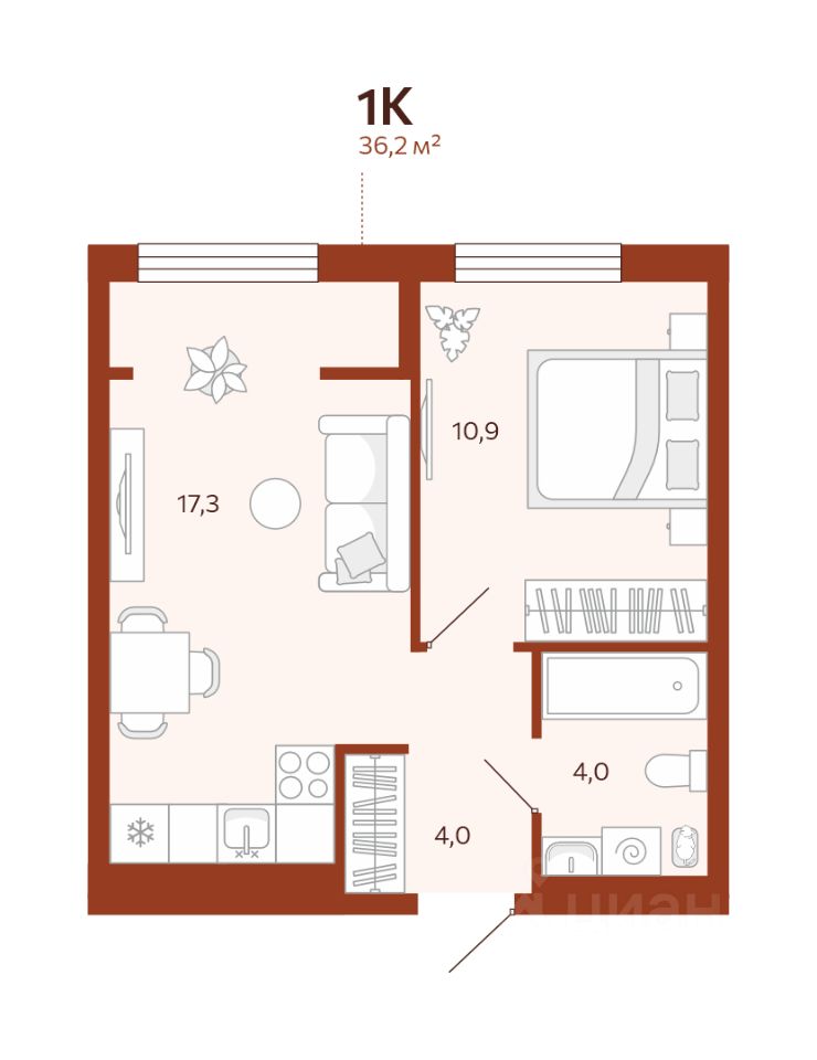 36 м² · Этаж 9 из 14