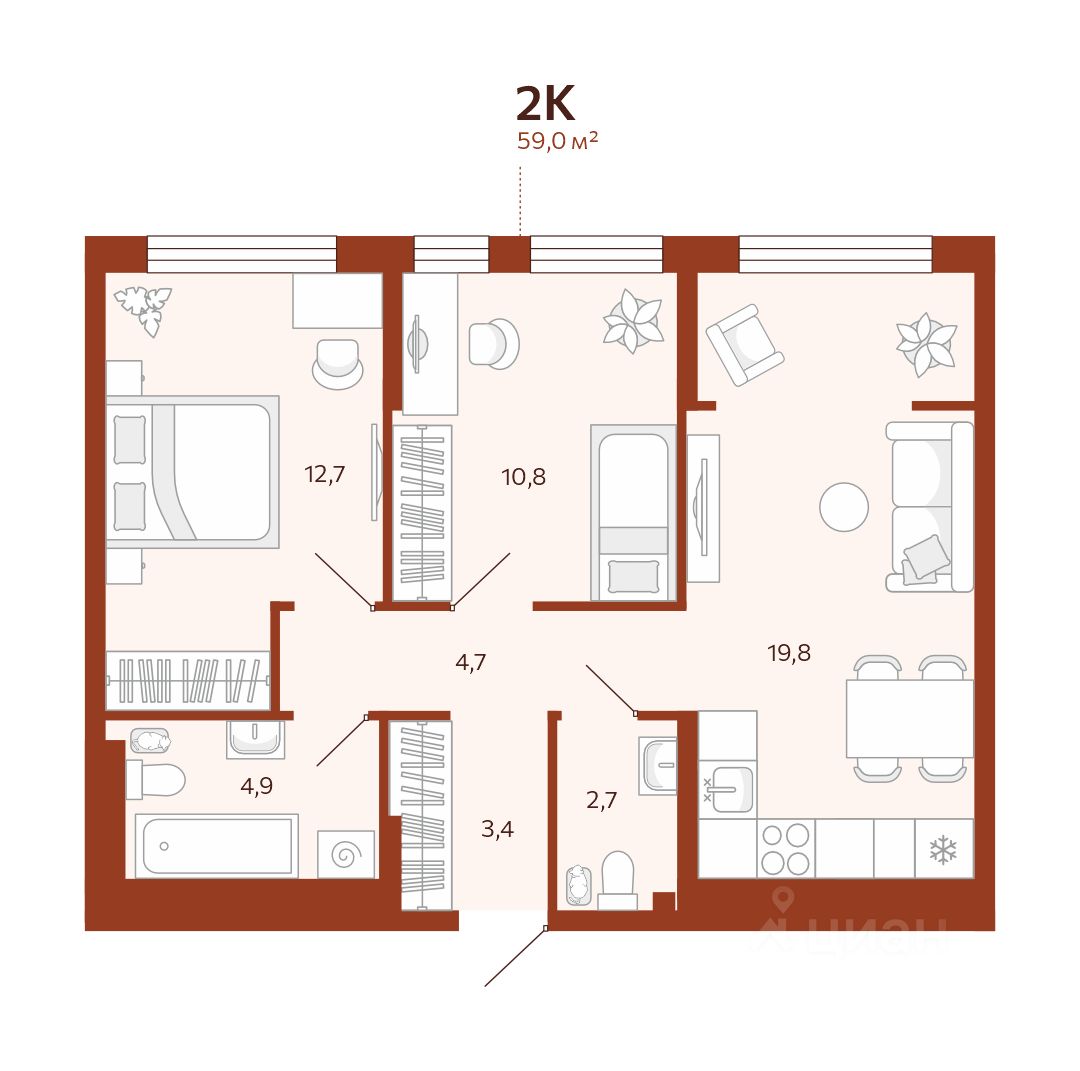 59 м² · Этаж 7 из 14