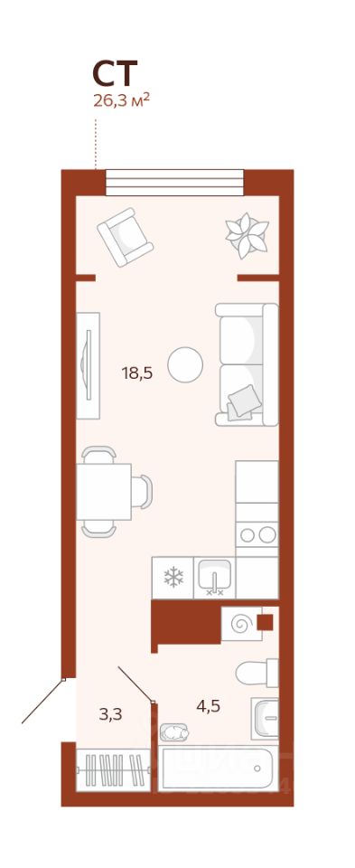 26 м² · Этаж 2 из 14
