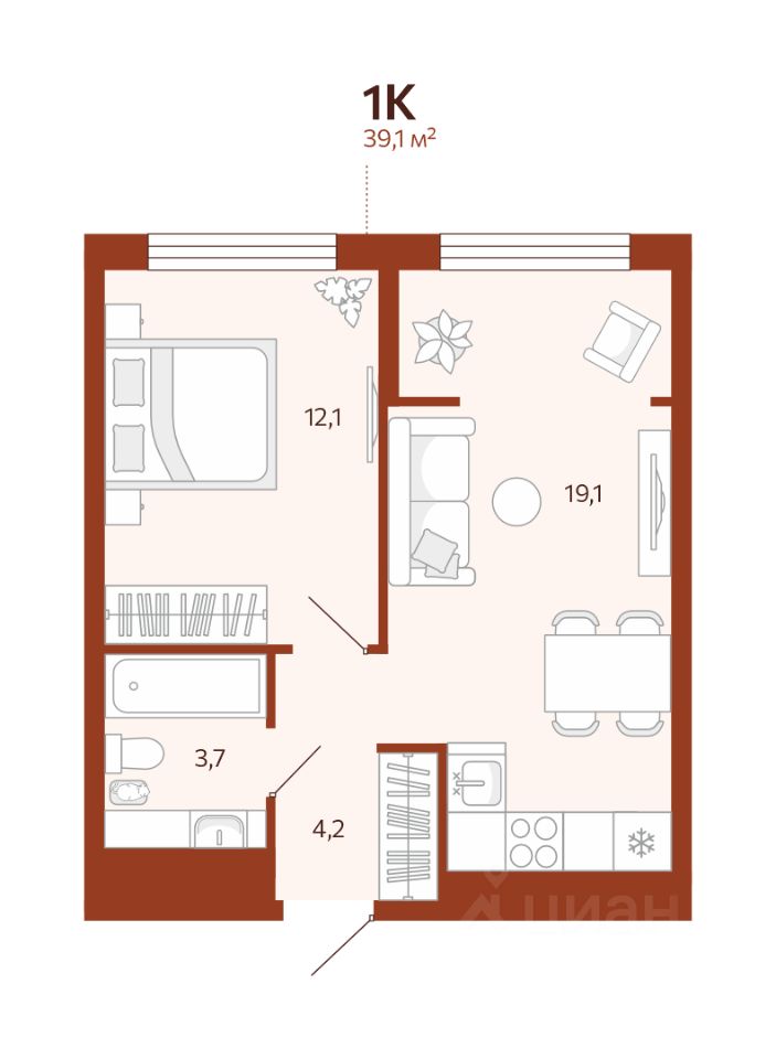 39 м² · Этаж 7 из 14