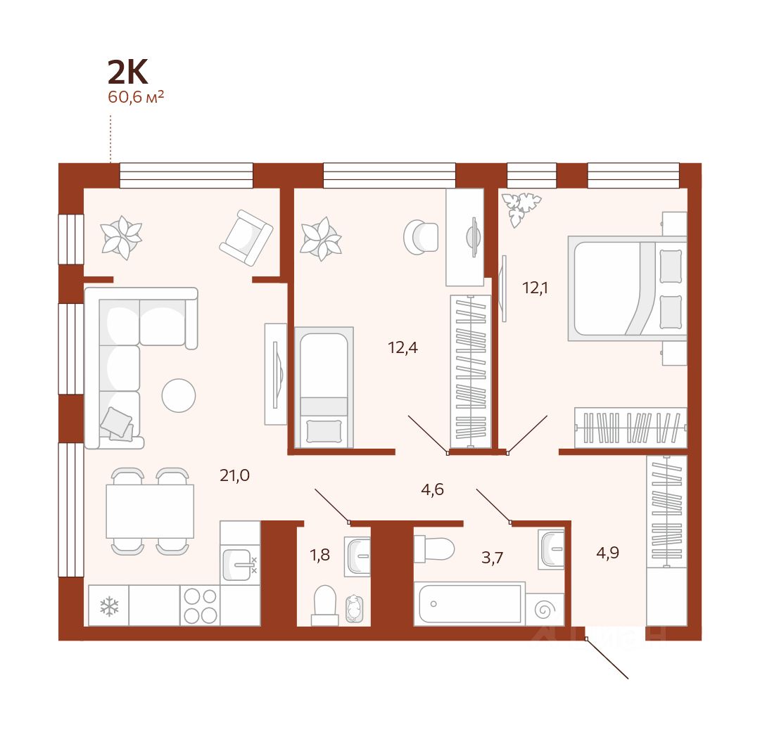 60 м² · Этаж 7 из 14