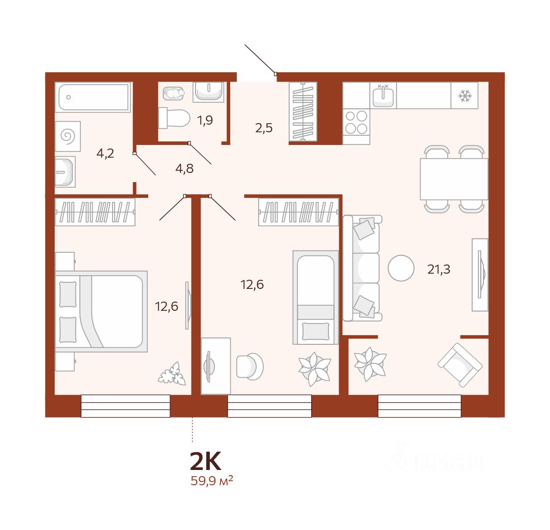 59 м² · Этаж 6 из 14