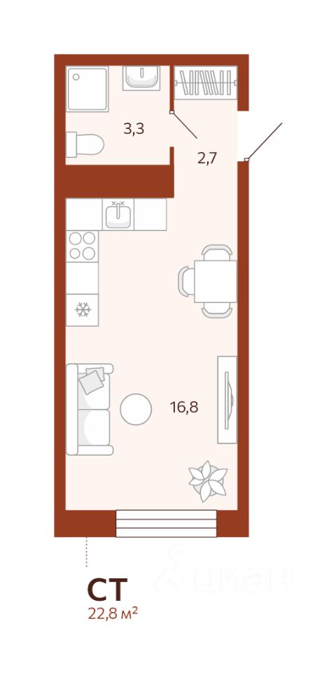 Продаётся студия в строящемся доме (ГП-2 (Новаторов, 30)), срок сдачи: II-кв. 2026, общей площадью 18.87 кв.м., на 11 этаже. Новый жилой комплекс ''Новатор'' от застройщика ГК ''СБК'' расположен по адресу: г. Тюмень по ул. Новаторов.