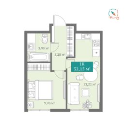 Однокомнатная квартира с предчистовой отделкой в ЖК ''Республики 205'' на 12 этаже. Общая площадь: 55.78 кв.м. Высота потолков 2.7 м. Купить квартиру можно с помощью программ покупки от застройщика Брусника:- ипотека по эксклюзивной ставке с помощью в получении положительного кредитного решения через сервис ипотечный брокер,- квартиры в рассрочку без процентов от застройщика Брусника,- обмен квартиры на новую. Получить одобрение ипотеки или рассрочку, а также осуществить обмен квартир можно онлайн. Дом монолитный, многоподъездный, переменной этажности, от 7 до 25 этажей. Квартира находится в 1-й секции высотой 25 этажей в корпусе 3-1. На этаже 8 квартир. В подъезде 2 пассажирских и 1 грузовой лифт. Окончание строительства - 1 квартал 2027 года. Оформление сделки по договору долевого участия. Район Проект расположен в границах улиц Пермякова, Энергетиков, Воровского и Республики. До центра города — 10 минут на машине. Рядом — автомобильная развязка на пересечении улиц Пермякова и Республики. В шаговой доступности есть школы, детские сады, поликлиники, крупный торговый центр, автовокзал и несколько скверов. Проект ''Республики 205'' — это проект комплексного развития территории, уникальный по своему наполнению. Переосмысляя бывшую территорию завода медицинского оборудования, мы создадим новое место силы — микрорайон, насыщенный деловой, развлекательной, рекреационной, игровой, образовательной и медицинской инфраструктурой. До каждого полезного сервиса здесь можно будет дойти за 15 минут. Локальными центрами ''Республики 205'' будут общественные пространства — скверы, парки, бульвары и площади.В границах нашего участка мы намерены разместить школу, рассчитанную на 1550 учеников, два детских сада на 300 мест и встроенный детский сад на 100 мест.В одном из цехов бывшего завода расположится креативный кластер ''Кузница''. Он станет площадкой для нескольких институций — галереи, лектория, книжного магазина-библиотеки, кинобара и точек креативного pop-up-ритейла. Пешеходные бульвары внутри района соединят между собой улицу ресторанов, детские и спортивные площадки, событийную площадь и летний кинотеатр. Идентификатор квартиры по базе застройщика: РСП03. #zS7eTB