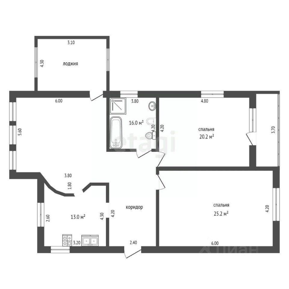 1-к, Николая Ростовцева, 20