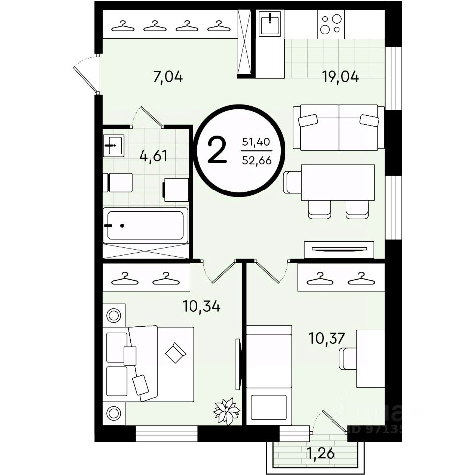 52 м² · Этаж 7 из 21