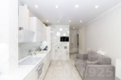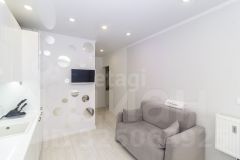 Вместительная студия с большой ванной комнатой и прихожей. В комнате предусмотрено грамотное зонирование на нишу и обеденную зону, а также на гостевую, которая легко трансформируется в спальню.