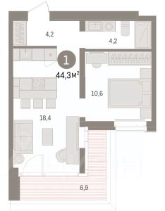 Однокомнатная квартира с предчистовой отделкой в Кварталы ''На Минской'' на 14 этаже. Общая площадь: 44.31 кв.м., жилая: 10.6 кв.м., площадь просторной кухни-гостиной: 18.4 кв.м. Все окна выходят на одну сторону. В квартире один балкон, один совмещенный санузел. Терраса представляет собой роскошную зону отдыха, где вы на свой вкус можете создать атмосферу комфорта и уюта. Высота потолков 2.7 м. Дом монолитный, многоподъездный, переменной этажности, от 7 до 16 этажей. Квартира находится в 1-й секции высотой 16 этажей в корпусе 1. На этаже 8 квартир. В подъезде 2 пассажирских лифта. Окончание строительства - 4 квартал 2026 года. Оформление сделки по договору долевого участия. Квартира с кухней-гостиной и одной спальней в кварталах ''На Минской''. Особенности планировки: предчистовая отделка. квартиры в нашей базе: МНС01-Ж1.14.2. В сердце города Кварталы ''На Минской'' находятся в самом центре. За десять минут можно дойти до площади 400-летия Тюмени и Большого Драматического театра, Тюменского индустриального и медицинского университетов, спортивного комплекса ''Строймаш'', ТРЦ ''Гудвин'' и ''Премьер'', Тюменского технопарка. Поблизости много детских садов, школ и поликлиник. Пространство разного опыта Создавая кварталы ''На Минской'' мы вдохновлялись Хакскими дворами в Берлине и улицей Давида Агмашенебели в Тбилиси. И первые и вторая — яркие разнообразные пространства, сформированные прогрессивными архитекторами и притягивающие городских интеллектуалов. Престижная недвижимость здесь соседствует с барами, ресторанами, креативными кластерами и бюро, дизайнерскими лавками. Полезные улицы Кварталы ''На Минской'' свяжет сеть променадов, автомобильных проездов и велодорожек. Уличный фронт проекта мы сформируем с помощью аллейной посадки деревьев. Они создадут тень для ресторанов и кафе на первых этажах, визуально отделят проезжую и пешеходную части, снизят объём пыли и уровень шума. Мы реализуем проект в районе с развитой базовой инфраструктурой. И поэтому тщательно подошли к программированию коммерции, посчитав, что её основная задача — ''закрывать'' более высокие потребности жителей. Здесь может появиться пекарня с вкусными круассанами, турагентство на случай, если захочется перезимовать в Сочи, массажный кабинет, ресторан, когда надоело есть дома и многое другое. #Z5fF9i