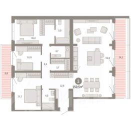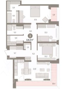 3-комн. квартира с предчистовой отделкой в Кварталы ''На Минской'' на 13 этаже. Общая площадь: 116 кв.м., жилая: 39.7 кв.м., площадь просторной кухни-гостиной: 22.9 кв.м. Квартира угловая, очень светлая, естественная вентиляция при открытии окон. В квартире один балкон и одна лоджия, два совмещенных санузла. Наличие в квартире террасы открывает возможность для обустройства дополнительной площади. Высота потолков 2.7 м. Дом монолитный, многоподъездный, переменной этажности, от 7 до 16 этажей. Квартира находится в 1-й секции высотой 16 этажей в корпусе 1. На этаже 8 квартир. В подъезде 2 пассажирских лифта. Окончание строительства - 4 квартал 2026 года. Оформление сделки по договору долевого участия. Квартира с кухней-гостиной и тремя спальнями в кварталах ''На Минской''. Особенности планировки: гардеробная, лоджия, мастер-спальня, панорамное остекление, постирочная, предчистовая отделка. квартиры в нашей базе: МНС01-Ж1.13.1. В сердце города Кварталы ''На Минской'' находятся в самом центре. За десять минут можно дойти до площади 400-летия Тюмени и Большого Драматического театра, Тюменского индустриального и медицинского университетов, спортивного комплекса ''Строймаш'', ТРЦ ''Гудвин'' и ''Премьер'', Тюменского технопарка. Поблизости много детских садов, школ и поликлиник. Пространство разного опыта Создавая кварталы ''На Минской'' мы вдохновлялись Хакскими дворами в Берлине и улицей Давида Агмашенебели в Тбилиси. И первые и вторая — яркие разнообразные пространства, сформированные прогрессивными архитекторами и притягивающие городских интеллектуалов. Престижная недвижимость здесь соседствует с барами, ресторанами, креативными кластерами и бюро, дизайнерскими лавками. Полезные улицы Кварталы ''На Минской'' свяжет сеть променадов, автомобильных проездов и велодорожек. Уличный фронт проекта мы сформируем с помощью аллейной посадки деревьев. Они создадут тень для ресторанов и кафе на первых этажах, визуально отделят проезжую и пешеходную части, снизят объём пыли и уровень шума. Мы реализуем проект в районе с развитой базовой инфраструктурой. И поэтому тщательно подошли к программированию коммерции, посчитав, что её основная задача — ''закрывать'' более высокие потребности жителей. Здесь может появиться пекарня с вкусными круассанами, турагентство на случай, если захочется перезимовать в Сочи, массажный кабинет, ресторан, когда надоело есть дома и многое другое. #24tEmv
