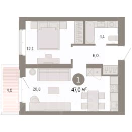 Однокомнатная квартира с предчистовой отделкой в Кварталы ''На Минской'' на 4 этаже. Общая площадь: 47.01 кв.м., жилая: 12.1 кв.м., площадь просторной кухни-гостиной: 20.8 кв.м. Все окна выходят на одну сторону. В квартире один балкон, один совмещенный санузел. Высота потолков 2.7 м. Дом монолитный, многоподъездный, переменной этажности, от 7 до 11 этажей. Квартира находится в 9-й секции высотой 7 этажей в корпусе 2. На этаже 7 квартир. В подъезде 1 пассажирский и 1 грузовой лифт. Окончание строительства - 1 квартал 2027 года. Оформление сделки по договору долевого участия. Квартира с кухней-гостиной и одной спальней в кварталах ''На Минской''. Особенности планировки: балкон, предчистовая отделка. квартиры в нашей базе: МНС02-Ж9.4.2. В сердце города Кварталы ''На Минской'' находятся в самом центре. За десять минут можно дойти до площади 400-летия Тюмени и Большого Драматического театра, Тюменского индустриального и медицинского университетов, спортивного комплекса ''Строймаш'', ТРЦ ''Гудвин'' и ''Премьер'', Тюменского технопарка. Поблизости много детских садов, школ и поликлиник. Пространство разного опыта Создавая кварталы ''На Минской'' мы вдохновлялись Хакскими дворами в Берлине и улицей Давида Агмашенебели в Тбилиси. И первые и вторая — яркие разнообразные пространства, сформированные прогрессивными архитекторами и притягивающие городских интеллектуалов. Престижная недвижимость здесь соседствует с барами, ресторанами, креативными кластерами и бюро, дизайнерскими лавками. Полезные улицы Кварталы ''На Минской'' свяжет сеть променадов, автомобильных проездов и велодорожек. Уличный фронт проекта мы сформируем с помощью аллейной посадки деревьев. Они создадут тень для ресторанов и кафе на первых этажах, визуально отделят проезжую и пешеходную части, снизят объём пыли и уровень шума. Мы реализуем проект в районе с развитой базовой инфраструктурой. И поэтому тщательно подошли к программированию коммерции, посчитав, что её основная задача — ''закрывать'' более высокие потребности жителей. Здесь может появиться пекарня с вкусными круассанами, турагентство на случай, если захочется перезимовать в Сочи, массажный кабинет, ресторан, когда надоело есть дома и многое другое. #ZsSCA8