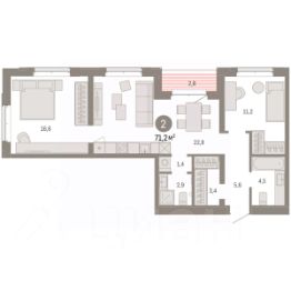 2-комн. квартира с предчистовой отделкой в Кварталы ''На Минской'' на 3 этаже. Общая площадь: 71.15 кв.м., жилая: 27.8 кв.м., площадь просторной кухни-гостиной: 22.8 кв.м. Квартира угловая, идеально подойдет любителям тишины и панорамных видов. В квартире одна лоджия, два совмещенных санузла. Высота потолков 2.7 м. Дом монолитный, многоподъездный, переменной этажности, от 7 до 11 этажей. Квартира находится в 9-й секции высотой 7 этажей в корпусе 2. На этаже 7 квартир. В подъезде 1 пассажирский и 1 грузовой лифт. Окончание строительства - 1 квартал 2027 года. Оформление сделки по договору долевого участия. Квартира с кухней-гостиной и двумя спальнями в кварталах ''На Минской''. Особенности планировки: балкон, предчистовая отделка, разнесённые спальни. квартиры в нашей базе: МНС02-Ж9.3.5. В сердце города Кварталы ''На Минской'' находятся в самом центре. За десять минут можно дойти до площади 400-летия Тюмени и Большого Драматического театра, Тюменского индустриального и медицинского университетов, спортивного комплекса ''Строймаш'', ТРЦ ''Гудвин'' и ''Премьер'', Тюменского технопарка. Поблизости много детских садов, школ и поликлиник. Пространство разного опыта Создавая кварталы ''На Минской'' мы вдохновлялись Хакскими дворами в Берлине и улицей Давида Агмашенебели в Тбилиси. И первые и вторая — яркие разнообразные пространства, сформированные прогрессивными архитекторами и притягивающие городских интеллектуалов. Престижная недвижимость здесь соседствует с барами, ресторанами, креативными кластерами и бюро, дизайнерскими лавками. Полезные улицы Кварталы ''На Минской'' свяжет сеть променадов, автомобильных проездов и велодорожек. Уличный фронт проекта мы сформируем с помощью аллейной посадки деревьев. Они создадут тень для ресторанов и кафе на первых этажах, визуально отделят проезжую и пешеходную части, снизят объём пыли и уровень шума. Мы реализуем проект в районе с развитой базовой инфраструктурой. И поэтому тщательно подошли к программированию коммерции, посчитав, что её основная задача — ''закрывать'' более высокие потребности жителей. Здесь может появиться пекарня с вкусными круассанами, турагентство на случай, если захочется перезимовать в Сочи, массажный кабинет, ресторан, когда надоело есть дома и многое другое. #zSTAde