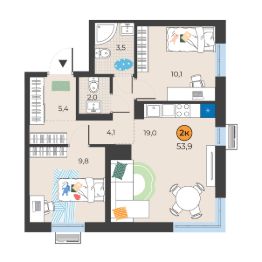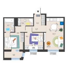 3-к, Николая Семенова, 19 Показать на карте