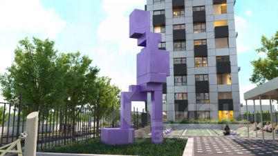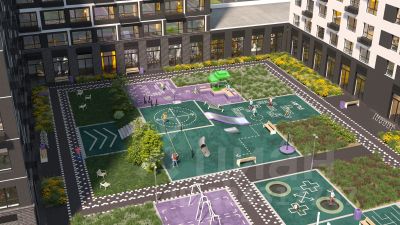 19-этажная архитектурная доминанта с эффектом паруса и камерная секция: французские балконы, сити-хаусы на 1-м этаже, 9 этажей в доме. Уступчатая структура формирует динамичный силуэт — новый акцент ул. Полевая. Металлические балконы создают градиент от тёмного к светлому, большие окна — панорамные виды на город.