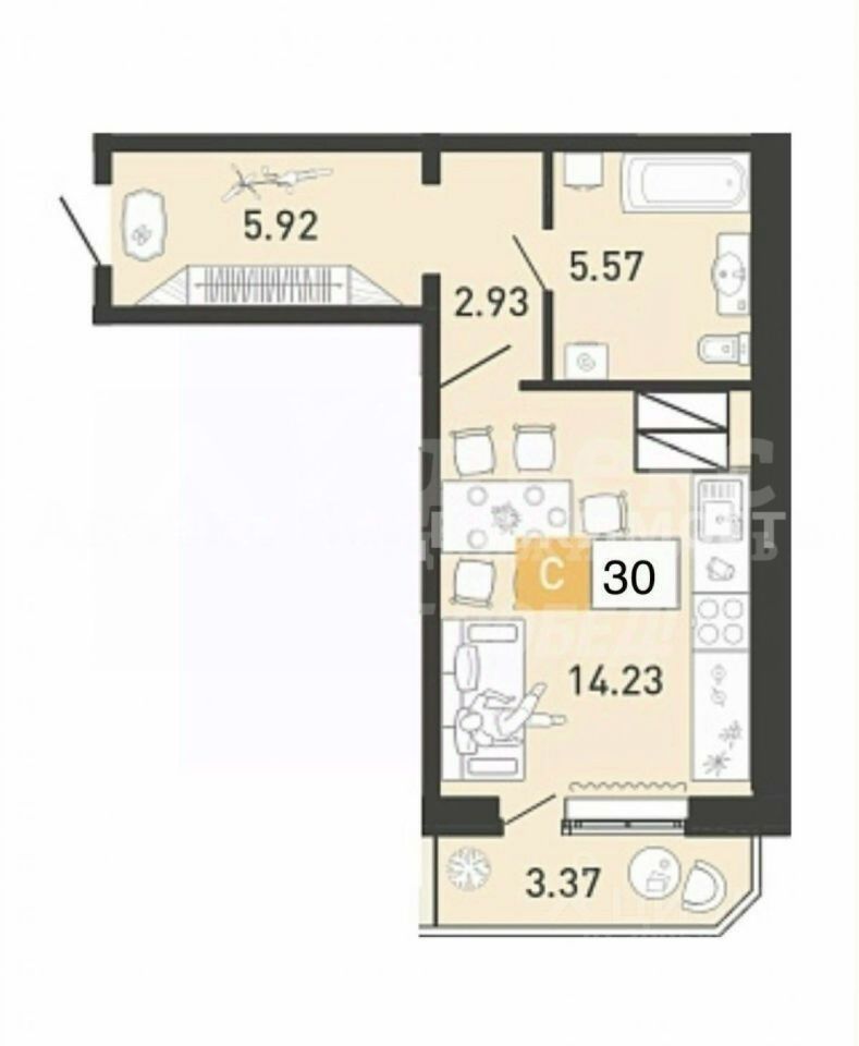 39 м² · Этаж 14 из 14