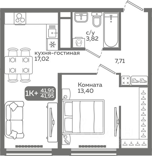 При покупке этой квартиры за наличный расчет предоставляется скидка 5% Прямая продажа от застройщика! Продается однокомнатная квартира в строящемся ЖК ''Меридиан Слобода'', срок сдачи: I-кв. 2027, общей площадью 41.95 м², на 12 этаже из 21. Площадь кухни — 17.02 м². ''Меридиан Слобода'' расположен в южной части (зеленой зоне) Тюменской Слободы рядом со строящимся Комарово парком в границах улиц Заполярная и Спасская. В районе расположены все необходимые объекты социальной инфраструктуры. ЖК ''Меридиан Слобода'' состоит из двух домов переменной этажности от 15 до 20 с отделкой фасадов разной фактуры. Главная особенность ЖК — свой собственный хвойный сквер прямо во дворе. Территория сквера будет оформлена в минималистичном стиле, главное правило которого сохранение экосистемы и гармоничное встраивание объектов инфраструктуры в природную среду. Здесь будут дорожки из деревянных настилов, зоны отдыха, отель для птиц. Квартиры сдаются с предчистовой отделкой или с ремонтом. О возможности приобретения квартиры с ремонтом уточняйте у менеджеров отдела продаж. Преимущества ЖК: — тёплый тамбур с домофоном на второй двери — дизайнерское оформление подъездов — колясочная и парковка для велосипедов — лапомойка — кладовые на цокольном этаже со входом через подъезд — закрытый двор — зоны для игр и спорта во дворе